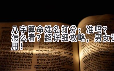 想知道你的名字和命运究竟有多大关联吗?“八字算命姓名打分”到底靠谱吗?今天就来扒一扒这个神秘的学问!简单来说,八字算命姓名打分,就是将你的姓名笔画、五行属性,结合你的生辰八字,进行综合分析,从而评估你的名字对你人生运势的影响。至于准不准,信则有,不信则无。但了解一下也无妨,说不定能给你带来一些新的启发和思考呢!下面就来详细说说这其中的门道!