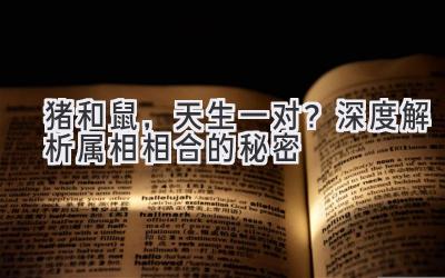 朋友们,你们是不是也很好奇,属相之间到底有没有什么神奇的化学反应?今天咱们就来好好聊聊猪和鼠这两个小家伙的组合,看看它们之间究竟合不合拍!